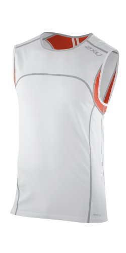 2XU Men's Gym Singlet, White/Burnt Orange, Medium Review